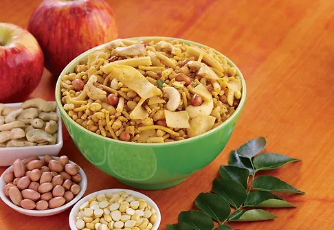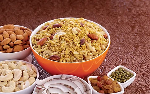 Sev, Kachori, Bhavnagri, Methi Puri, Besan Bundi, Makai Mixture etc .